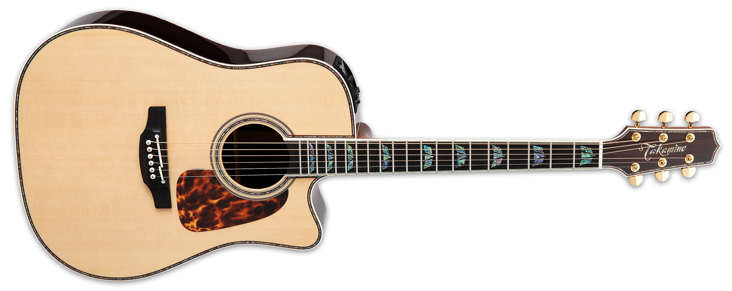 This dreadnaught cutaway represents the top tier of the Pro Series guitars. Built with the highest grade solid Sitka spruce tops and premium solid East Indian rosewood back and sides, the P10DC starts with awesome tonewoods, then adds a beautiful mahogany neck with ebony fingerboard and bridge. All of this is meticulously inlaid with dazzling colorful abalone purfling and bold "mountain" inlay. The work is insanely detailed and showcases the incredible skill of the luthiers at Takamine's Gifu, Japan facility.